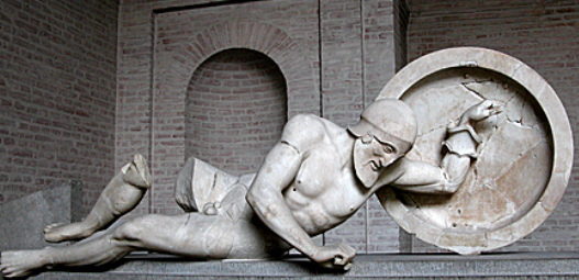 전쟁에서 패한 갈리아인 전사가 아내를 칼로 찔러 죽이고 자신의 목을 찔러 스스로 목숨을 끊으려 하는 비극적인 장면을 묘사하고 있다.