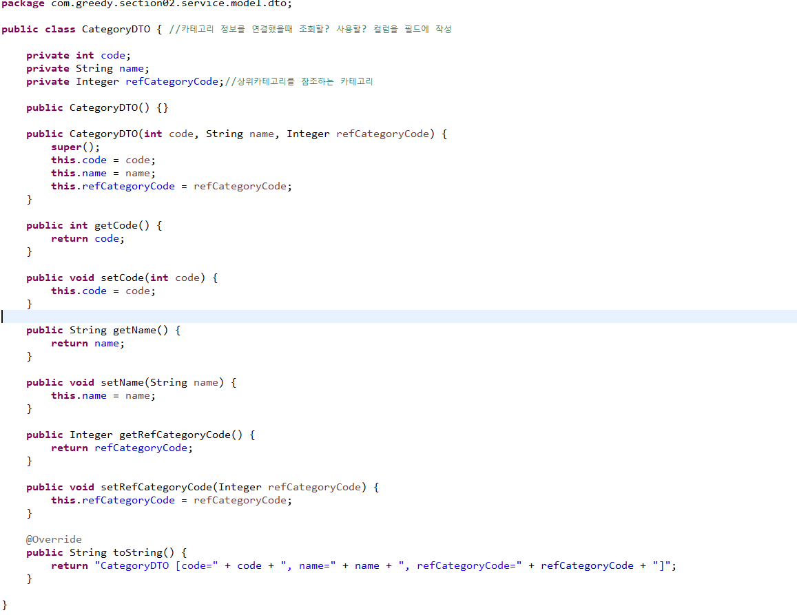 - 카테고리와 메뉴 DTO 작성