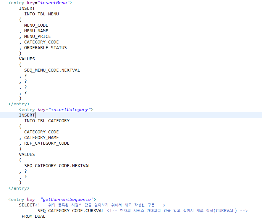 => CURRVAL라는 컬럼을 int 값으로 가져와서 newCategoryCode에 넣음