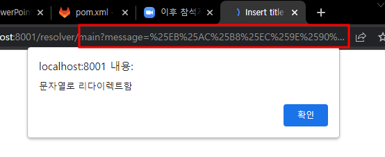 model.addAttribute("message", URLEncoder.encode("문자열로 리다이렉트함", "UTF-8"));