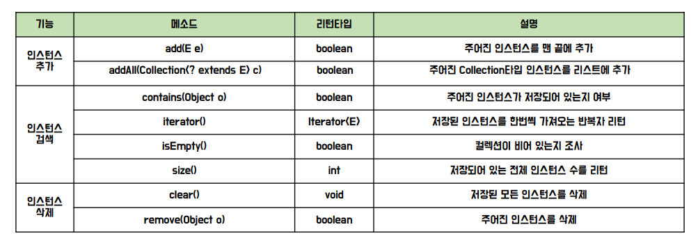 - Object[] toArray() : 저장된 객체들을 개체배열의 형태로 반환