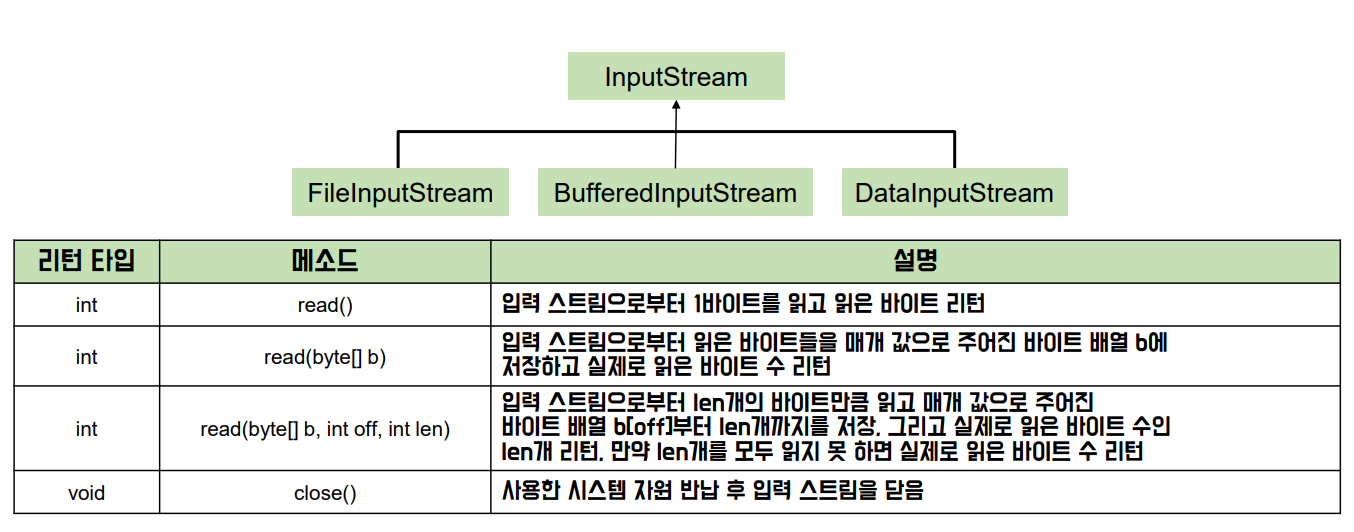 : 바이트 기반 입력 스트림의 최상위 클래스로 추상 클래스