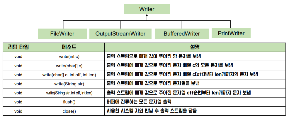 - Writer의 하위 클래스로 Writer의 메소드를 그대로 사용 가능