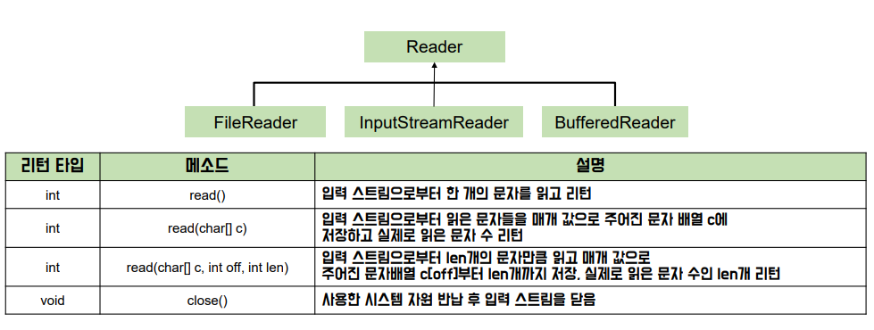 - Reader의 하위 클래스로 Reader의 메소드를 그대로 사용 가능