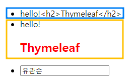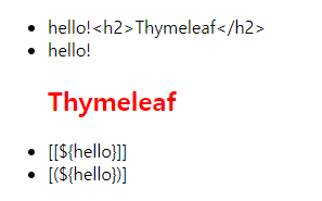 model.addAttribute("hello","hello!<h2>Thymeleaf</h2>");
