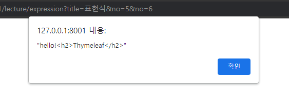 - 변수 표현식의 값을 html에 직접 표현하기 위해서 th:text와 같은 [[...]]를 사용하고 th:utext와 같은 [(...)]을 사용