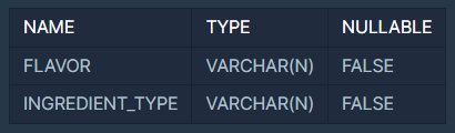 - 기본 키는 FLAVOR