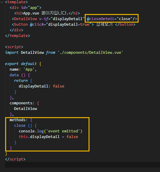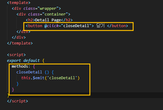 커스텀 이벤트 ($emit)을 사용하여 close 이벤트 설정하기