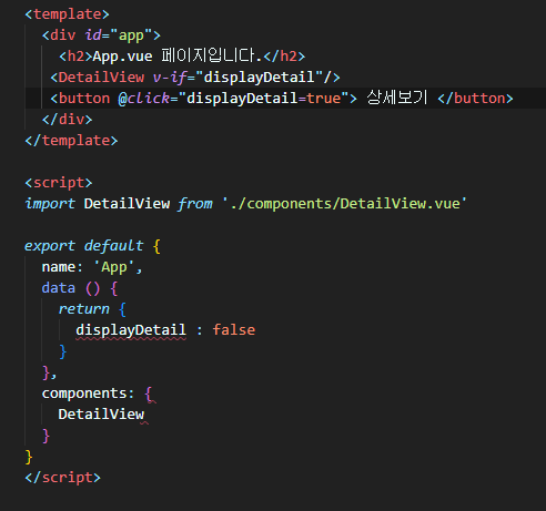 (2) 등록한 DeatailView 에 v-if를 사용하여 displayDetail 사용