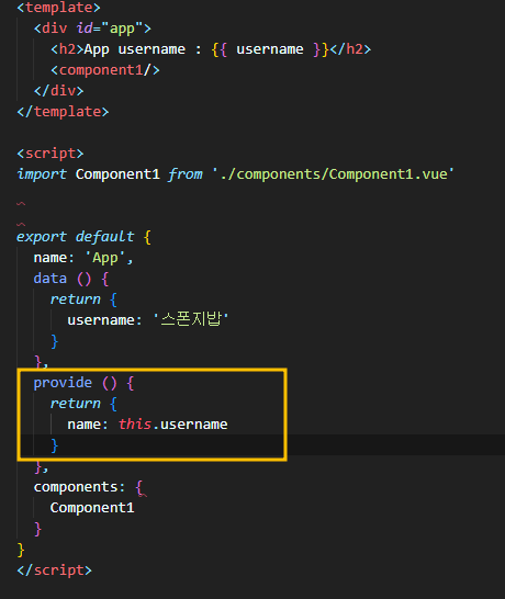 📌 App 컴포넌트에서 provide에 prop으로 보낼 변수명과 데이터 담기