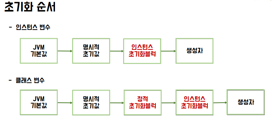 => 인스턴스 초기화 블럭이 동작하는 시점에는 이미 최화가 진행 된 정적 필드에