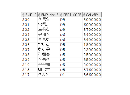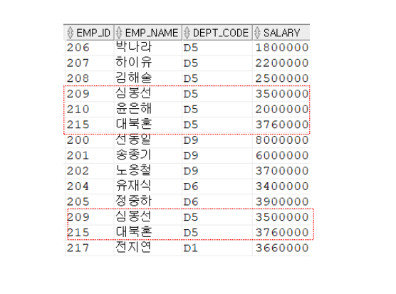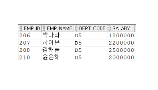 | 4 | HAVING 그룹함수식 비교연산자 비교값 |