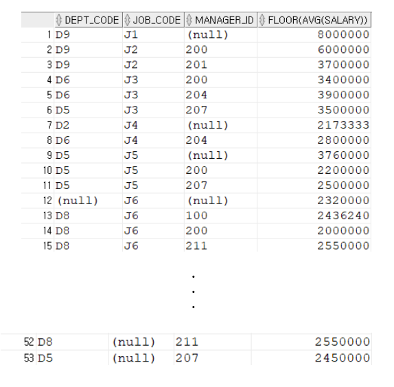 GROUP BY GROUPING SETS((DEPT_CODE, JOB_CODE, MANAGER_ID)