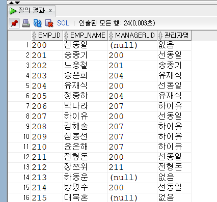 관리자 사번이 EMPLOYEE 테이블에 존재하는 직원에 대한 조회