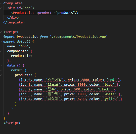 📌componet1을 자식 컴포넌트로 등록한 App.vue 📌componet1은 componet2를 componet2는 componet3을 자식 컴포넌트로 등록 → 마지막 자식 컴포넌트인 componet3에서 상위 부모컴포넌트인 App.vue의 prop을 받는 방법으로 , App.vue부터componet3.vue 까지 한 단계씩 prop을 전달하는 방법이 있지만, 이 방법은 번거로움으로 provide & inject 을 사용해서 prop을 보낸다. Provide & Inject 를 사용하여 prop 넘겨주기 ✔ provide : 데이터를 넘겨주는 쪽에서 사용(부모컴포넌트) ✔ inject : 데이터를 넘겨 받을 곳에서 사용(자식컴포넌트) 📌 App 컴포넌트에서 provide에 prop으로 보낼 변수명과 ..