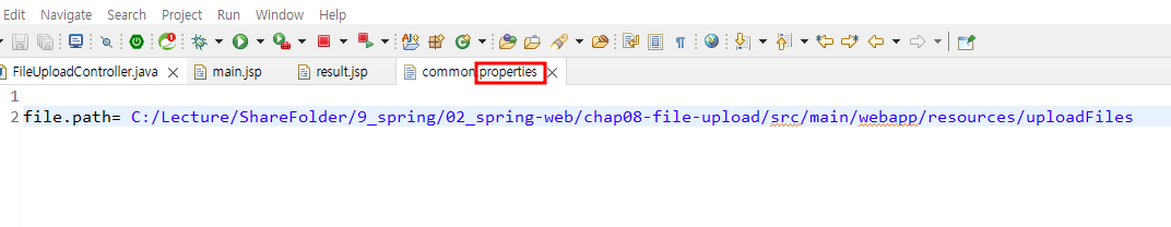 4) properies 파일에 upload 경로 설정하기
