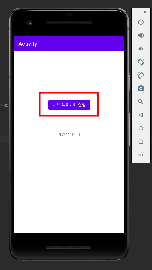 예시1) 버튼 클릭시 메인 액티비티에서 서브 액티비티로 전환