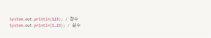 - 리터럴 : 프로그래밍 언어에서 미리 정의해놓은 값의 형태