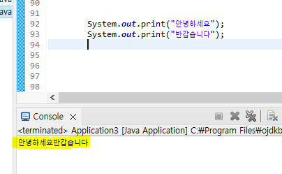 ()안의 변수, 문자, 숫자, 논리 값을 모니터에 출력해주는 메소드