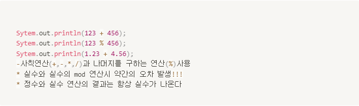 - 리터럴값들을 직접 산술 연산 할 수 있음