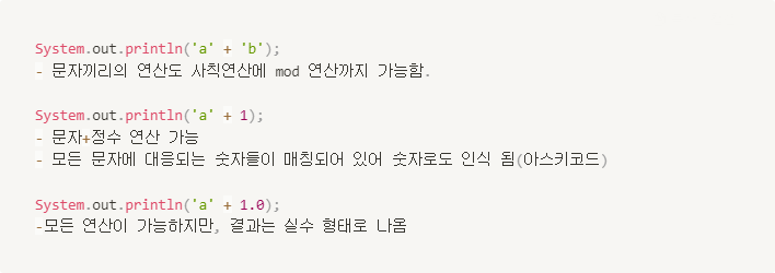 - 리터럴 종류별 사용 불가능한 산술 연산이 존재