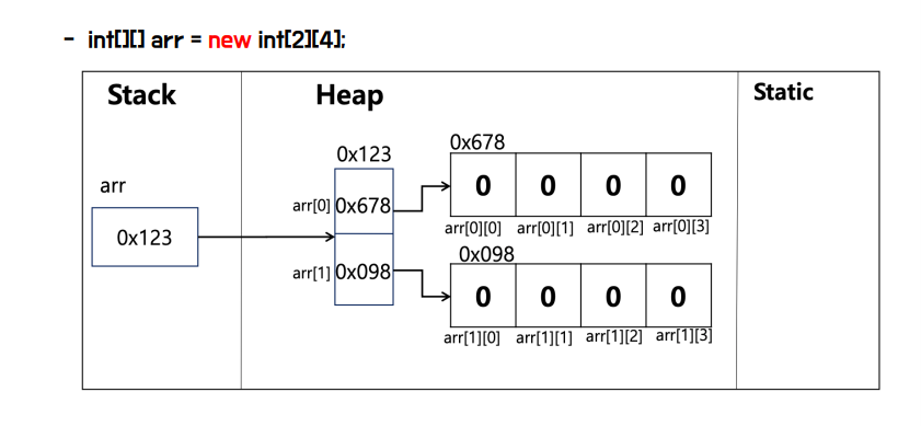 (x)iarr1 = new int[][4]; 주소를 묶어서 관리할 배열의 크기를 지정하지 않으면 에러 발생함